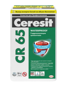 Гидроизоляционная масса Ceresit CR 65 WATERPROOF 20 КГ- обмазочная гидроизоляция на цементной основе для защиты оснований из бетона, кирпича, штукатурки, ЦПС, не содержащих гипс.