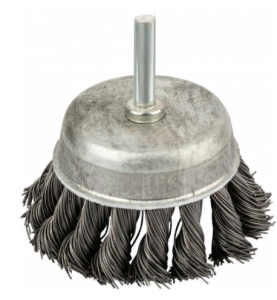 Корщетка чашечная применяется для очистки поверхностей от краски и ржавчины. Для дрели со шпилькой. Рабочая часть состоит из стальной витой проволоки.