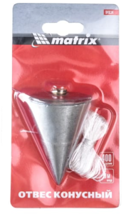 Конусный отвес MATRIX 84834 - это приспособление, состоящее из тонкого шнура и небольшого грузика на его конце. Под действием тяжести груза шнур всегда принимает строго вертикальное положение. Используется при строительных и отделочных работах для разметки и проверки вертикальных линий, поверхностей, различных стоек и т.д. Груз весом 400 г изготовлен из стали и имеет оцинкованное покрытие. Длина шнура - 5 м.