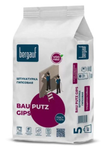 Штукатурка Бергауф Bau Putz Gips - штукатурка на гипсовой основе, обладает высокой трещиностойкостью. Идеально подходит для стен и потолков.